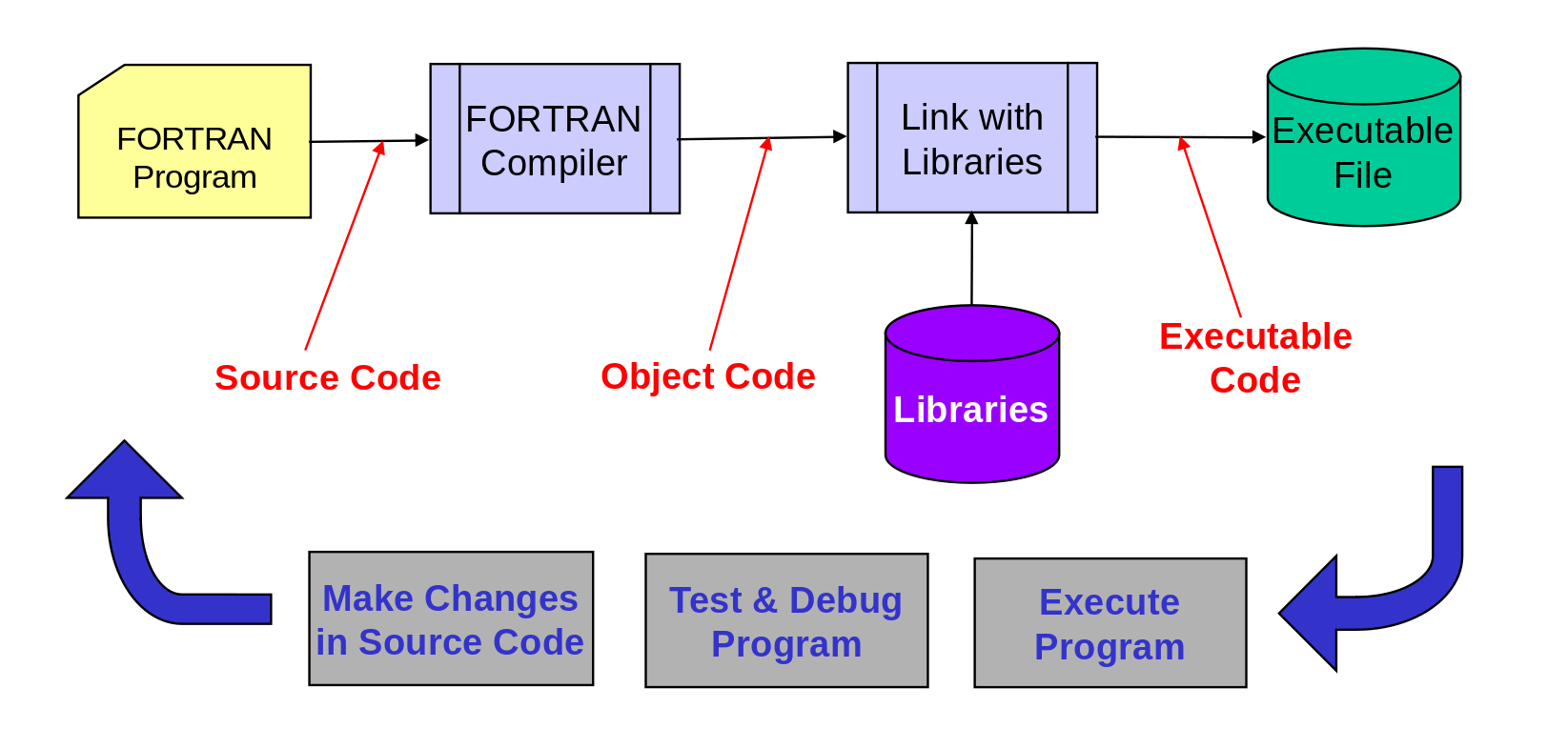 "standard" versionFORTRAN is a compiled language (like C) so the source code (what you write) must be converted into machine code before it can be executed (e.g. Make command)